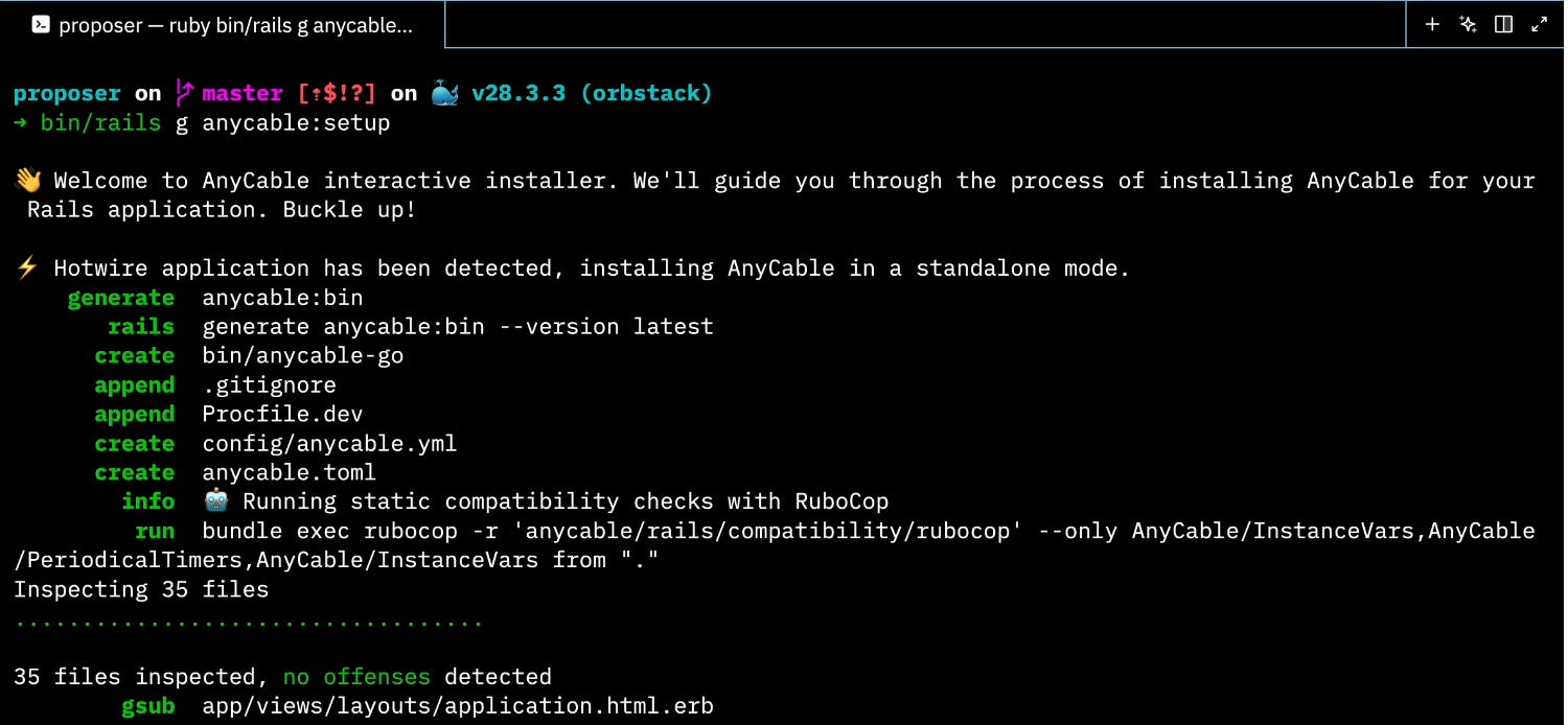 We’ve upgraded our interactive installer, so it fits new Rails defaults better, and helps you set up AnyCable in a reliable mode right away.